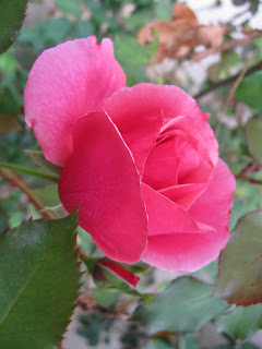 We had quite a weather day with clouds coming in, blustery winds, and rain this evening. Sometime before that I wandered out back to enjoy my December roses and the pretty colors of the trees.