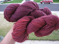 My favorite yarn to date has to be Barbara Perry's Foxfire-Springdelle Farm, Farm Yarn Collection. This yarn is 55% Cormo wool, from her flock, 25% Bombyx silk, and 20% prime alpaca, from a neighbor's flock. I entered a blog giveaway in celebration of her win with her ram Teaberry's fleece. To my great surprise and delight I won the giveaway and the yarn was my gift. It's a 2 ply DK weight. I aspire to own more of it-after using a good deal of the rest of the yarns in my stash. One of these days I aspire to participate in her sheep shares but I think that's a bit down the road.